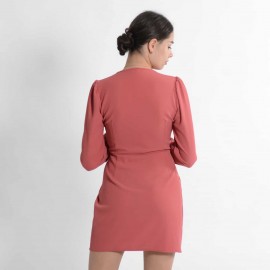 Kontatto women's short dress deep neckline, solid color, long sleeve.