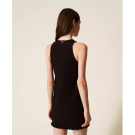 Short dress in viscose blend crepe with sequin trim at the hem. Sleeveless, with ribbon and bow neckline, invisible zip closure, lining, Oval T logo tag on the back, slim fit.