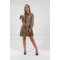 Dixie short checked women's dress, long sleeves, patterned detail on the neck tie and on the middle of the dress. Loose fit.