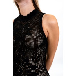 Long knit dress in a viscose blend with a mesh texture and a floral pattern in a gradient design.