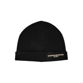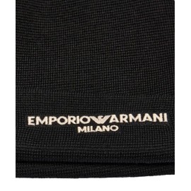 Emporio Armani unisex wool hat with turn-up and logo on the front, solid color.
