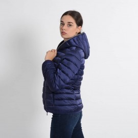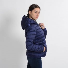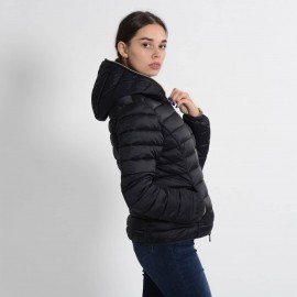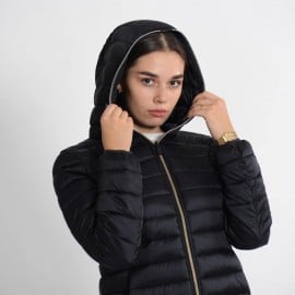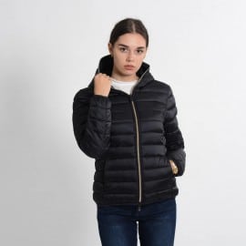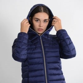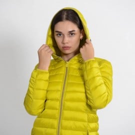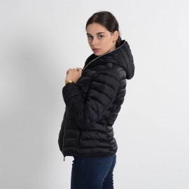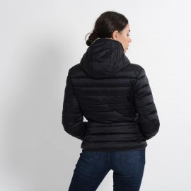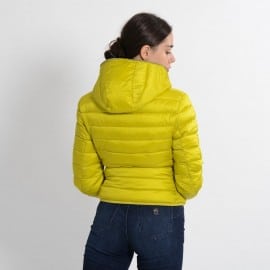 Quilted with a hood made of 100%nylon ultra-high-density fabric, it is extremely light and soft. Thin yet durable, it provides protection from water and air, absorbs moisture and dries quickly. The central zipper is custom tonal double slider, low pockets closed by invisible zippers. The cuffs and bottom finish in tonal Lycra. Left sleeve finished with orange logo with black lettering.