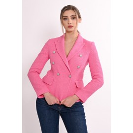 Women's short double-breasted Vicolo jacket with contrasting buttons.Side pockets.