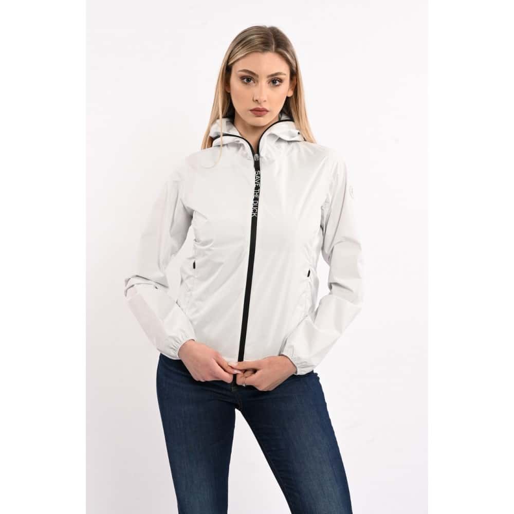 Dress rainy days in animal-free style with the Astrea jacket from our Rainy collection. Featuring 'SAVE THE DUCK' lettering along the central black waterproof zipper, it has technical details such as heat-taped seams, cuffs with internal elastic, and side pockets closed by invisible zippers. The tone-on-tone hot-stamped logo and custom zipper pulls serve as distinctive elements.