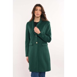 Maryley women's coat solid color, single breasted, contrasting gold buttons,slim fit, model is wearing size XS.