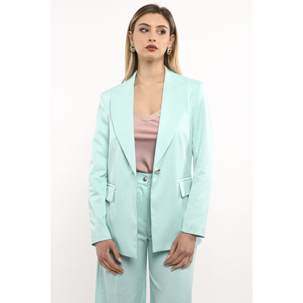 The model, wearing a size S, demonstrates how this jacket is designed to elegantly fit different body types, ensuring a flawless fit that does not go unnoticed. Whether you pair it with the matching pants for a chic suit effect or wear it separately to enrich more casual outfits, the Maryley Pinstripe Jacket is an undisputed style choice, ready to transform any look with a touch of class and originality.
