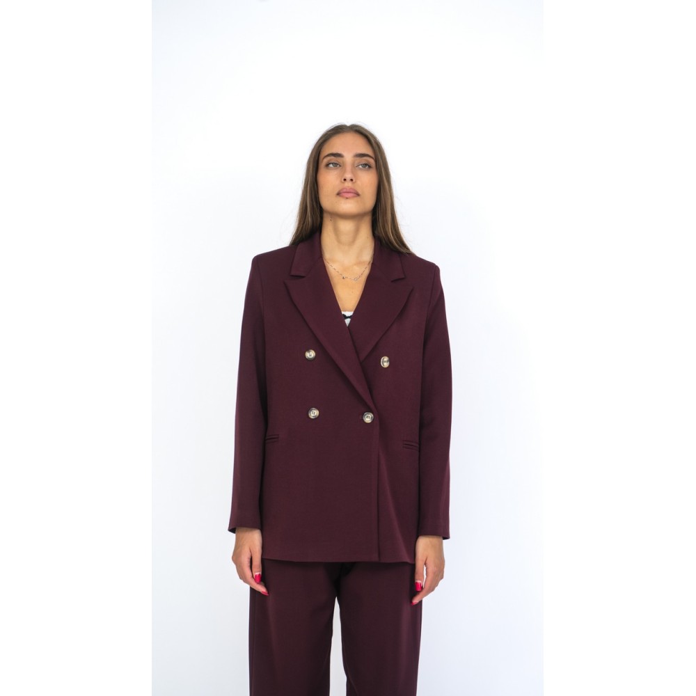 Dixie women's jacket, solid color, double-breasted, spear chest, over fit, front welt pocket. Model is wearing size S.