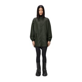 The Fishtail Jacket has a casual fit with a sleek drape, making it a stylish raincoat for the daily commute. The covered zipper closure is concealed by a minimalist button placket with hidden snaps. This rain jacket is made of Rains' iconic PU fabric and features taped seams. The finish is lightweight, soft to the touch.