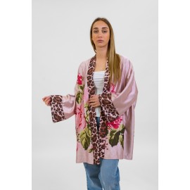 Dixie women's kimono, floral and spotted pattern, 3/4 sleeve,regular fit, silk effect.