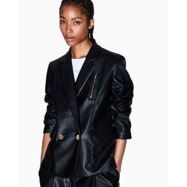 Armani Exchange double-breasted women's jacket in coated fabric, front pockets, contrasting gold buttons, peaked lapels, regular fit.