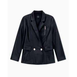 Armani Exchange double-breasted women's jacket in coated fabric, front pockets, contrasting gold buttons, peaked lapels, regular fit.