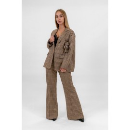 Dixie women's checked jacket, long sleeves, oversized fit, bear brooch detail, single-breasted, large front pockets with flaps.