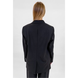 Oversized Dixie women's jacket, solid color, long sleeves, peaked lapels, single-breasted, front flap pockets. The model is wearing size XS.