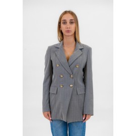 Maryley double-breasted pinstriped women's jacket, long sleeves, contrasting button detail, front flap pockets, slim fit. The model is wearing size XS.