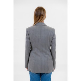 Maryley double-breasted pinstriped women's jacket, long sleeves, contrasting button detail, front flap pockets, slim fit.