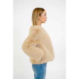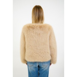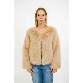Souvenir women's solid color faux fur coat, long sleeves, solid color, regular fit. The model is wearing size S.