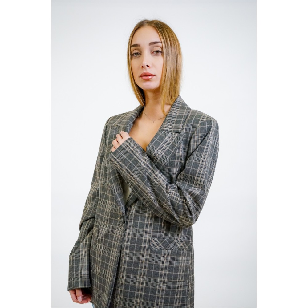 Kontatto women's checked patterned jacket, single-breasted, long sleeves, regular fit. The model is wearing size 42.