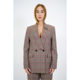Maryley women's double-breasted checked patterned jacket, long sleeves, brooch detail on the lapel, regular fit. The model is wearing size S.