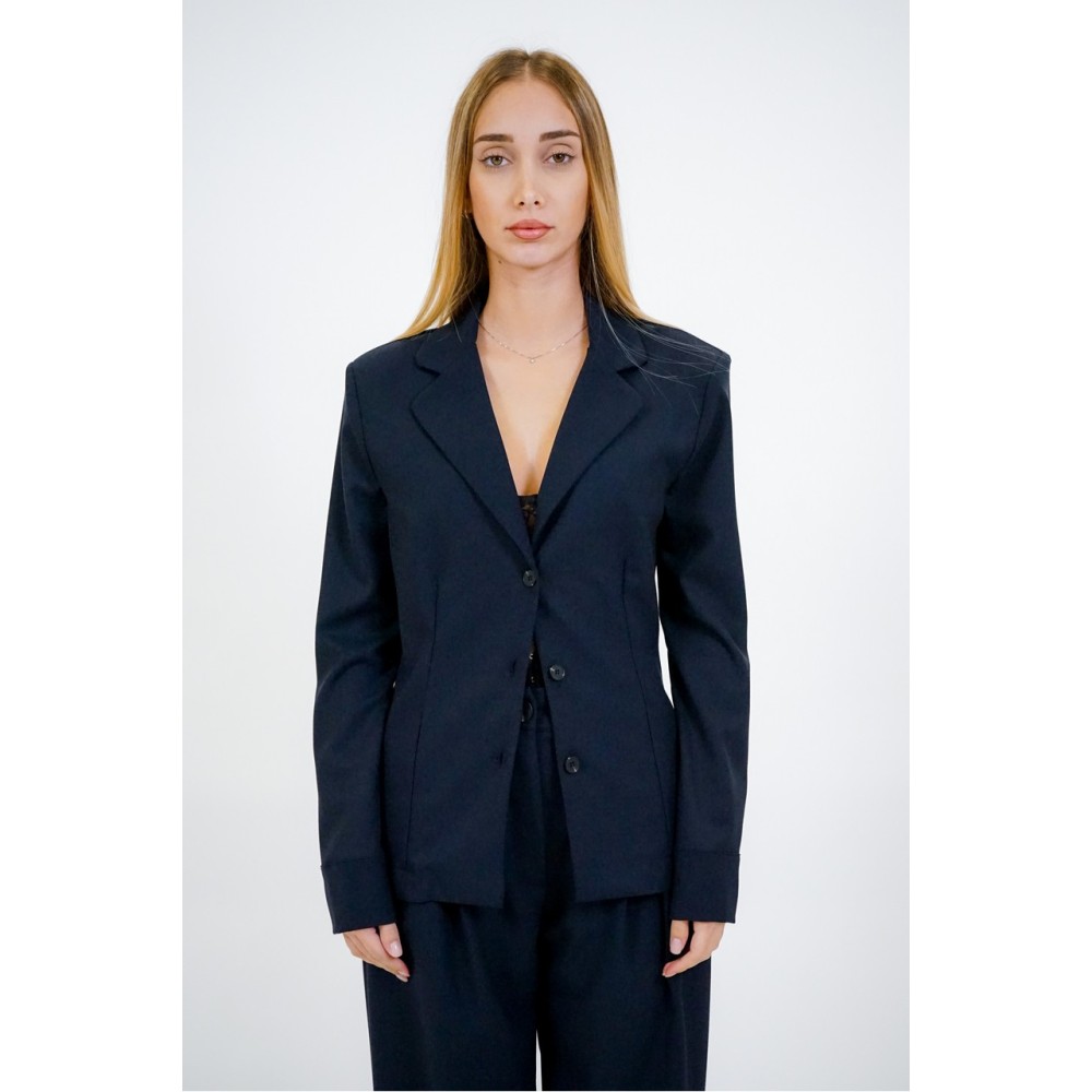 Haveone women's jacket, single-breasted, lace detail on the back, slim fit. The model is wearing size XS.
