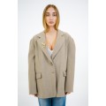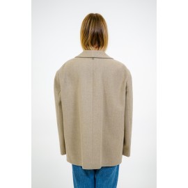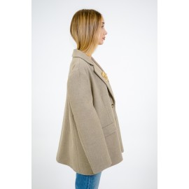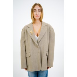 Dixie oversized women's jacket, single-breasted, front welt pockets, gold brooch detail on the collar. The model is wearing size S.