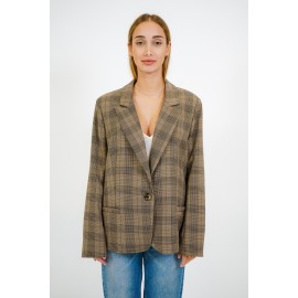 Haveone women's patterned jacket, single-breasted, front pockets, oversized fit. The model is wearing size S.