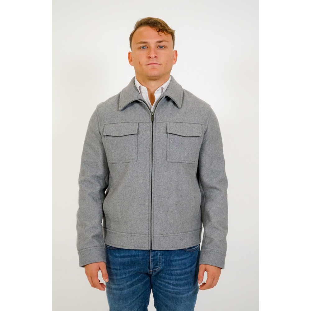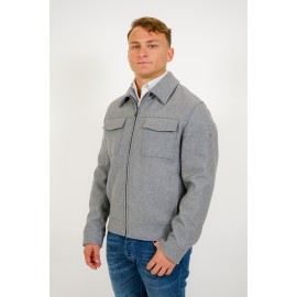 Manuel Ritz short wool jacket, solid color, zip closure, front pockets. The model is wearing size 50.