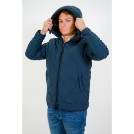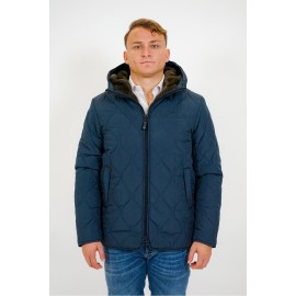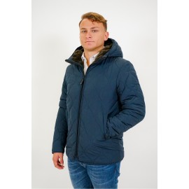 Short quilted men's parka with hood