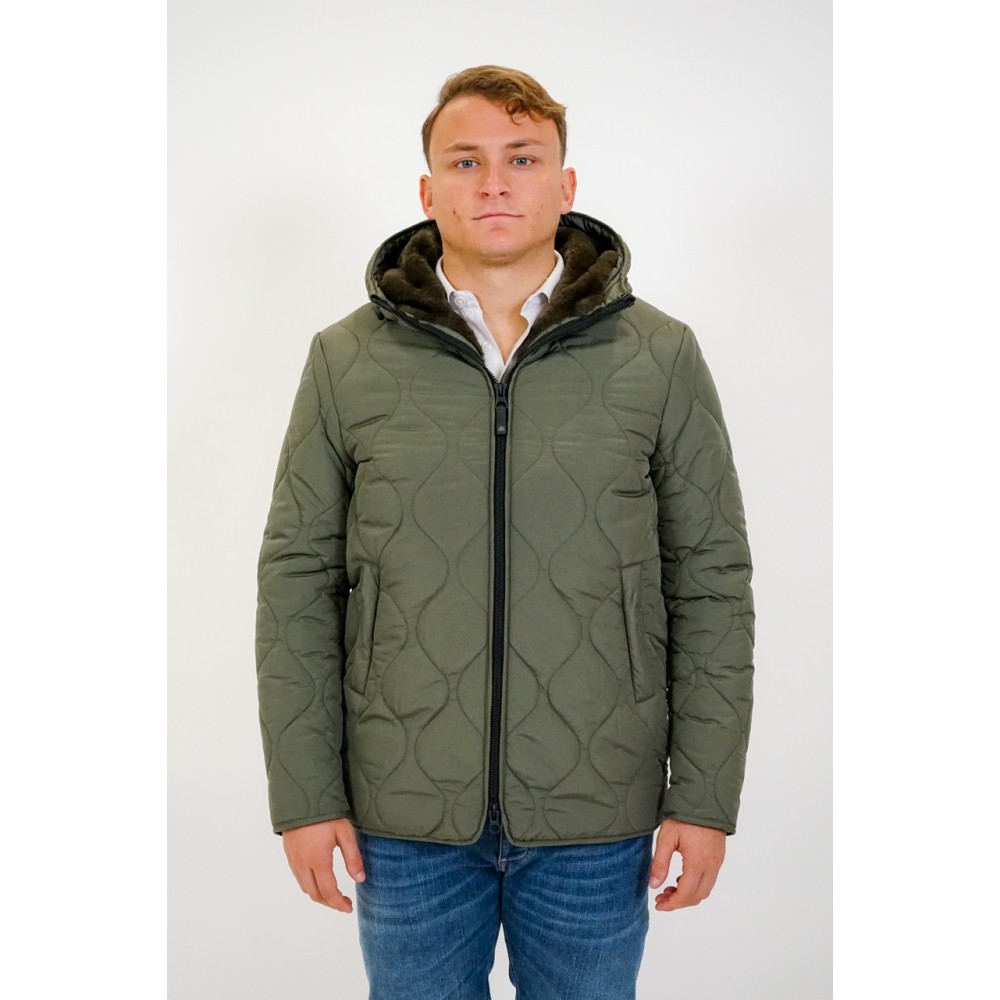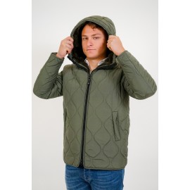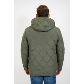 Short quilted men's parka with hood