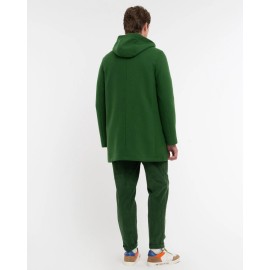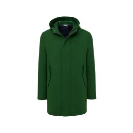 Lined parka, zip closure with concealed snap buttons, two side pockets with snap button closure. Wool blend fabric.
