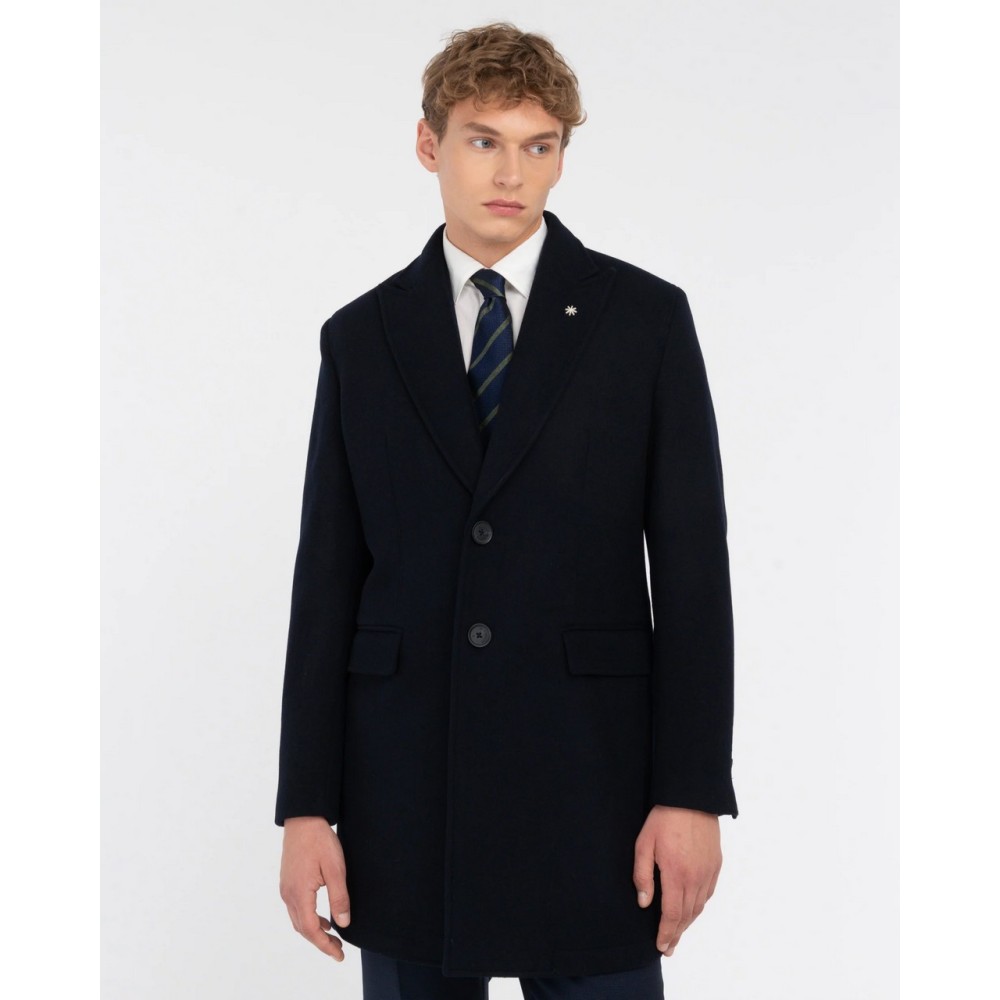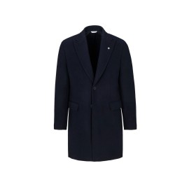 Nuvola coat, unlined, two-button closure, peak lapel, two front flap pockets, four buttons at the cuffs, topstitched trim. Wool blend fabric.