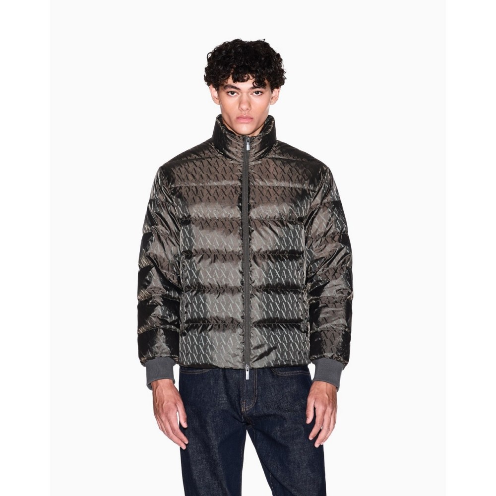 Jacket made with a technical nylon exterior and warm padding, the perfect garment for facing the cold with unmistakable style. This jacket stands out for its sophisticated all-over jacquard weave with tone-on-tone A|X logo, a detail that adds a touch of understated elegance and a strong identity. The high collar, front zip closure, and practical side zip pockets define its functional design, while the ribbed cuffs and hem ensure an optimal fit.