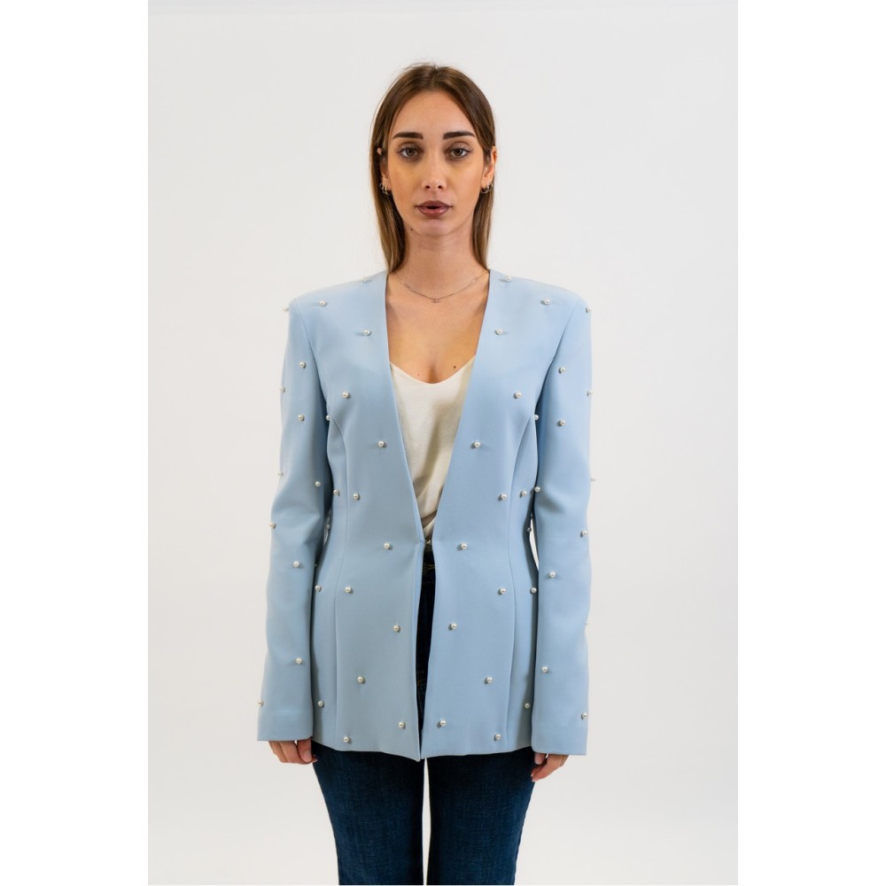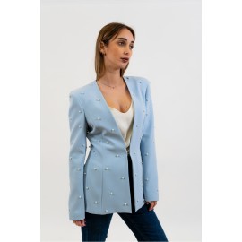 Women's blazer with pearl appliqués Silence limited, deep neckline, hook closure, long sleeves.