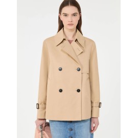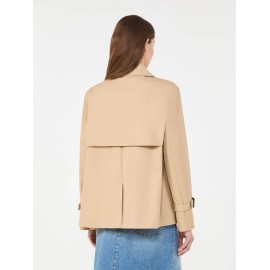 Short trench coat in water-repellent gabardine, featuring a flared silhouette with a shirt collar and set-in sleeves with toggles at the cuffs. Finished with welt pockets at the hips and a central slit at the back. Double-breasted closure with buttons. Personalized with the Weekend Max Mara logo printed on the inner lining of the yoke.