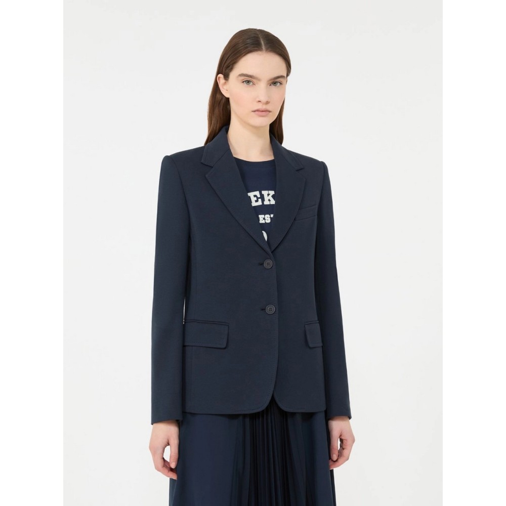Max Mara Weekend women's single-breasted blazer with a slightly fitted silhouette. Plain color, front closure with two buttons, chest pocket, and welt pockets with flaps.