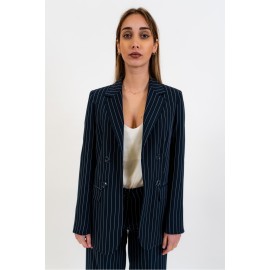 Women's double-breasted pinstripe blazer without a closure, regular fit. The model is wearing size 40.