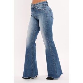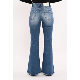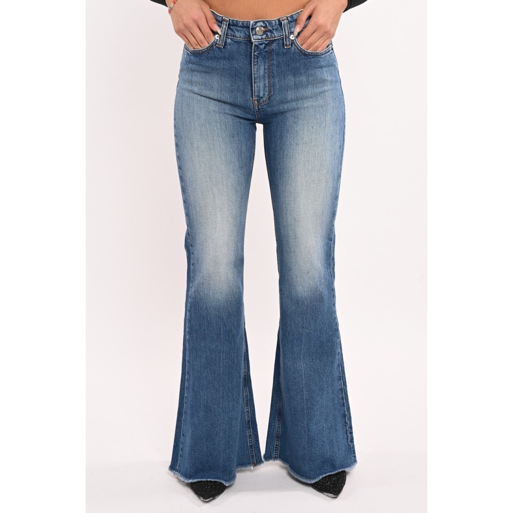 Women's flared jeans Vicolo high waist, 5 pockets, zipper and button closure, frayed at the bottom.