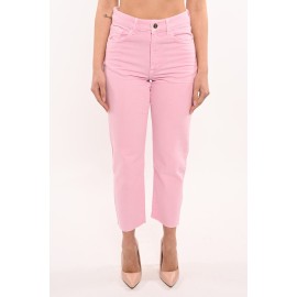 Women's denim pants with Hinnominate label, momfit pattern, zipper and button closure, 5 pockets, regular fit. The model is wearing size XS.