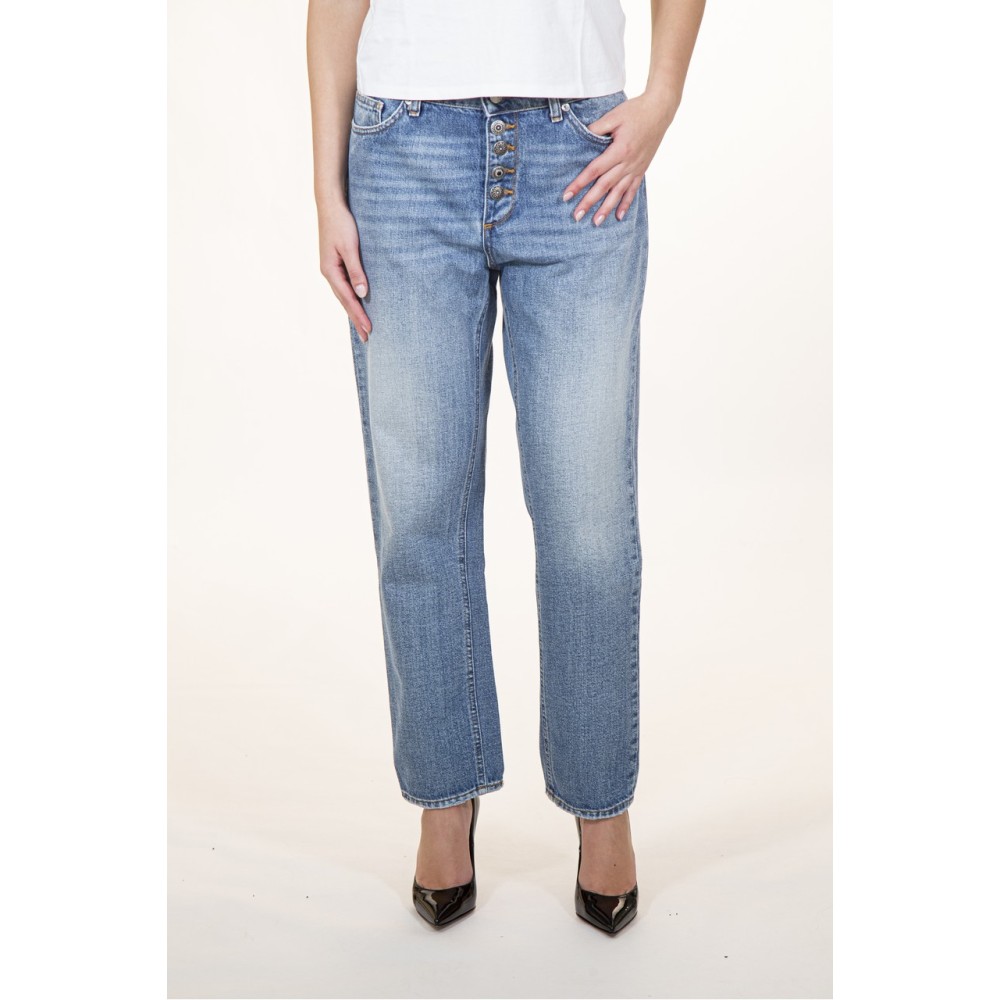 Women's Vicolo jeans Piper model, button closure, five pockets, regular fit. The model is wearing size S.