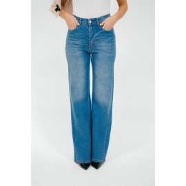 Women's palazzo jeans, high waist, zip and button closure, 5 pockets, regular fit.