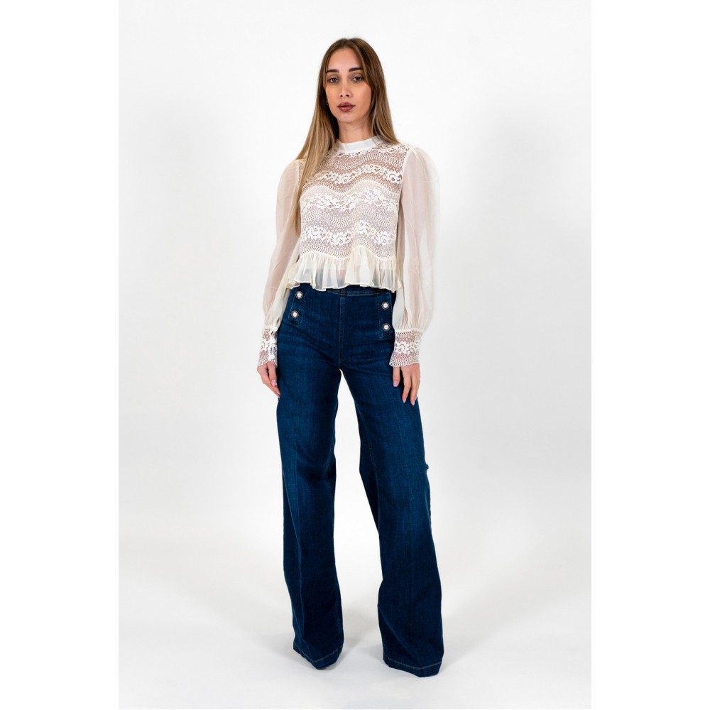 Twinset women's wide-leg jeans with a button closure at the front and stretch fabric. The model is wearing size 40.
