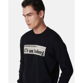 White crew-neck shaved dropped sweater made of 100 percent cotton for natural, breathable comfort. Newspaper graphic in double jacquard gives a unique and contemporary character, perfect for those seeking a sophisticated style.