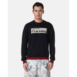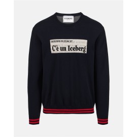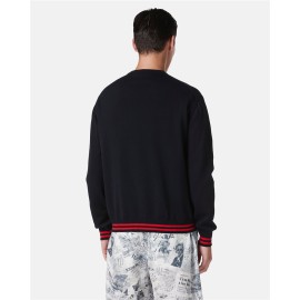 White crew-neck shaved dropped knit, made of 100 percent cotton for natural, breathable comfort. Newspaper graphics in double jacquard gives a unique and contemporary character, perfect for those seeking a refined style. Worked ribbed details on the sleeves and contrasting striped ribbing complete the design with a sophisticated touch, making it an ideal choice for casual yet distinctive looks.