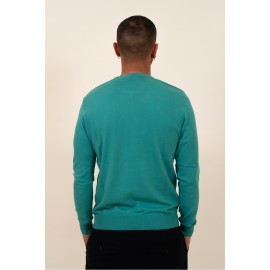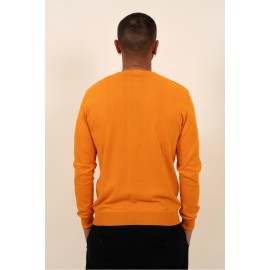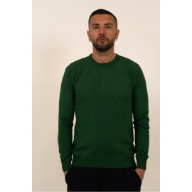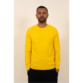 Men's plain yarn sweater, crew neck, regular fit. Model is wearing size L.