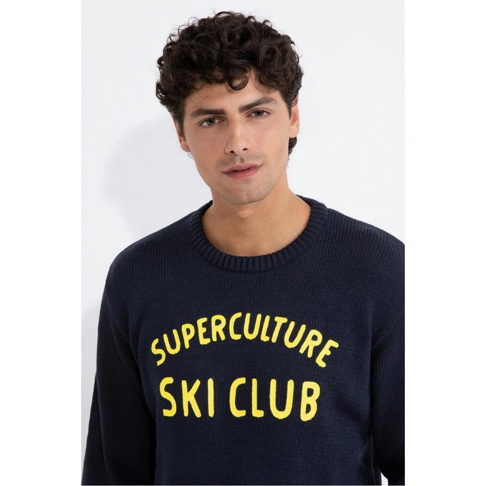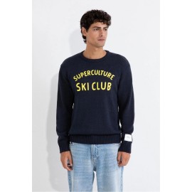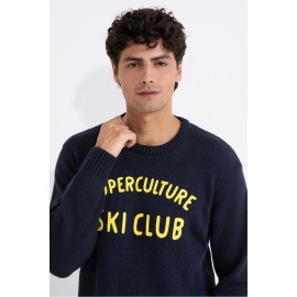 Men's pullover with Superculture Sky Club embroidered lettering, long sleeves, regular fit.