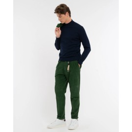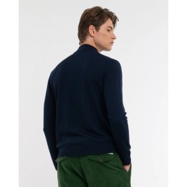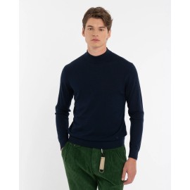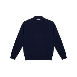 Mock neck with ribbed trim, tone-on-tone logo embroidery. Pure merino wool.