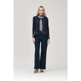 Women's cardigan White wise, long sleeves, sequined details on the cuffs and hem. Clip closure at the neck.