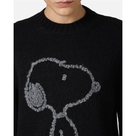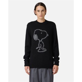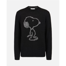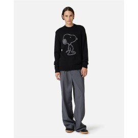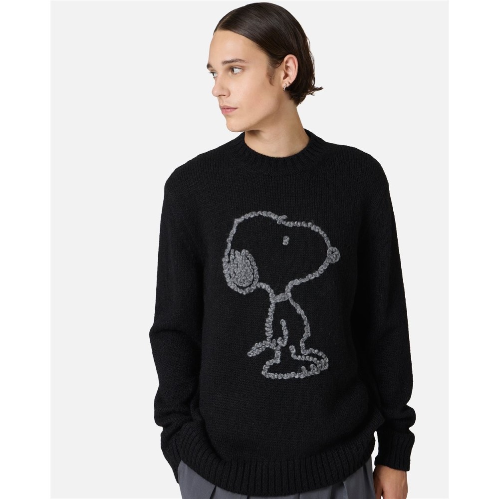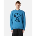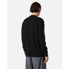 New regular fit crew neck sweater in dark sky blue wool and alpaca slub yarn, with a flat knit that enhances the texture of the fabric. The center front is embellished with simple embroidery, while the upper back features an inlaid rectangle in reverse satin with tone-on-tone Iceberg embroidery. A warm, graphic garment that strikes the perfect balance between comfort and visual identity.