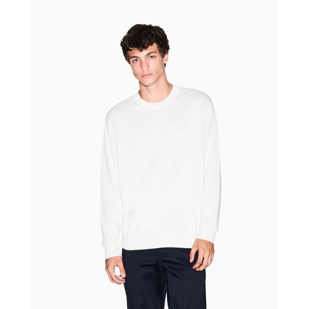 This sweater, a reinvented essential, offers uncompromising comfort and style. Made from a fine cotton blend, it is exceptionally soft against the skin and has a natural fit, ensuring warmth and lightness. The clean, contemporary design is enhanced by a discreet embroidered detail, adding a touch of distinctive sophistication.