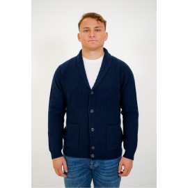Ragman plain color men's cardigan, front pockets, button closure, regular fit. The model is wearing size L.
