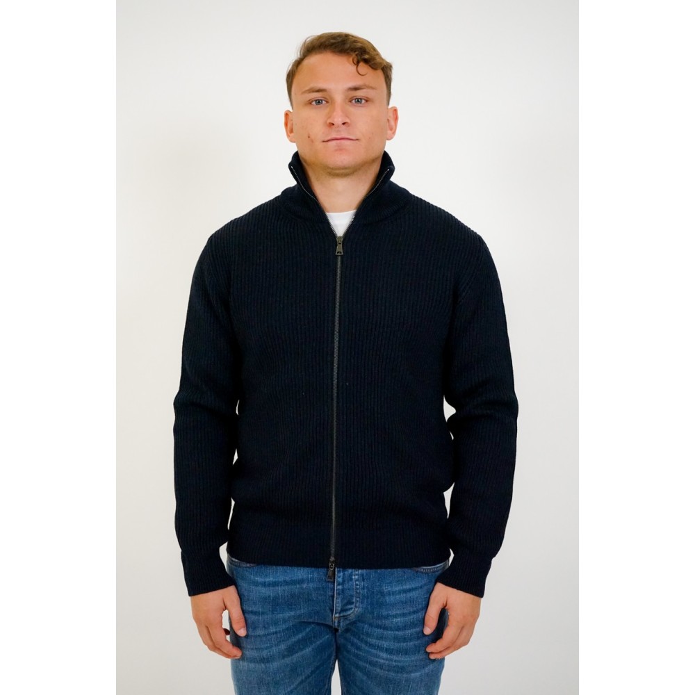 Become men's plain cardigan, zip closure, volcano collar, regular fit. The model is wearing size L.